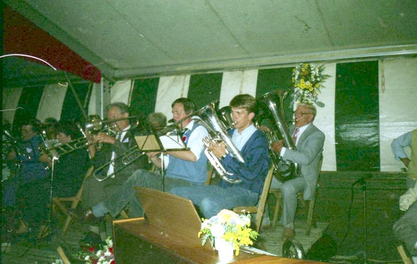 Muziekvereniging "De Bazuin" op de Bisschopsweg.